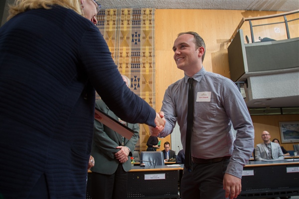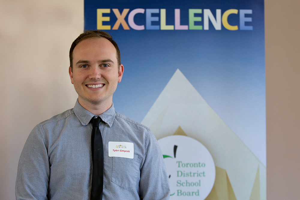 Tyler GmyrekTeacherWoodbine Middle SchoolTyler Gmyrek always puts his students first. He is eager to find ways to connect with each of his students, often using music as a common ground to reach them and provide an outlet for their creative expression. He runs many extracurricular activities including the band which has more than 60 students and this year, won Gold at the Kiwanis Music Festival. He also runs the Glee Club and has begun teaching students how to play the steel pans. He organizes a leadership and anti-bullying overnight conference for the students. He is also the staff advisor of the Student Council and organizer of the year-long Quest of Bine initiative that divides students and staff into 4 teams for event days and builds school spirit. Tyler’s involvement and creativity is respected by the students and in turn, they are engaged and work hard to make sure they are reaching the standard he has set for them.