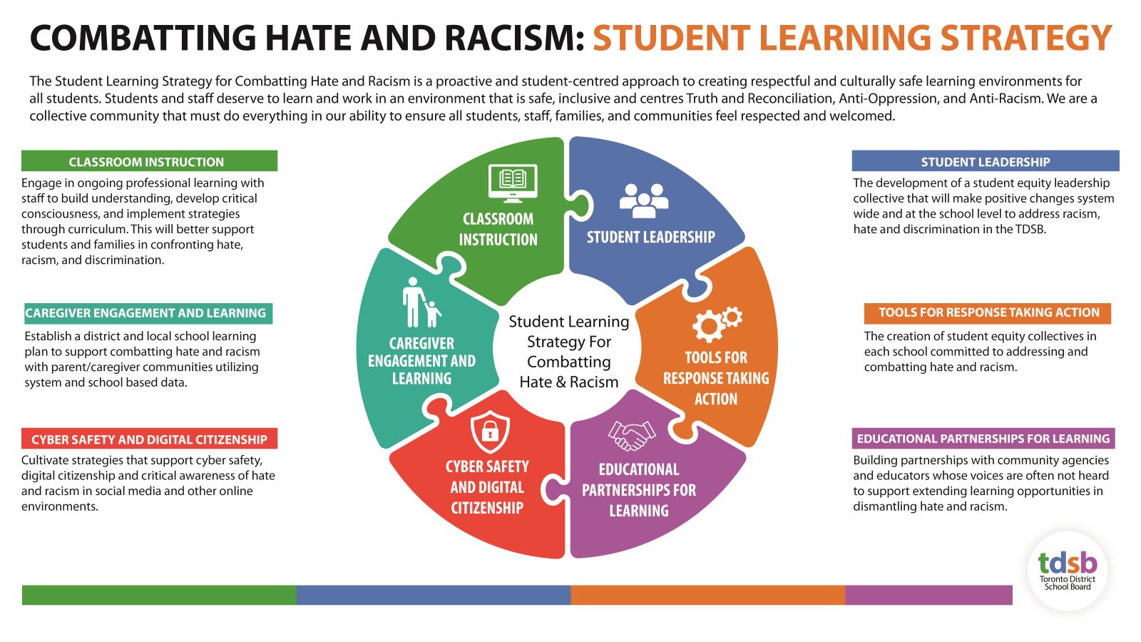 This plan is informed by our own TDSB data which shows us that prejudice and implicit bias are learned beginning at a young age. Most of the incidents of hate, bias and racism reported in the TDSB are carried out by students, and we must therefore focus greater attention on educating students to understand the current and historical roots of hatred, racism and intolerance.