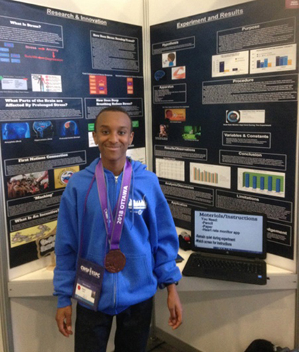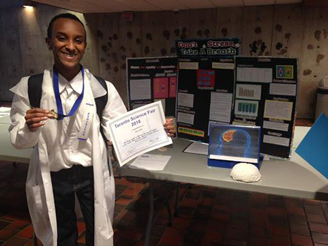 The Regional Science Fair was held recently in Toronto and Eastview’s Nain Abdi was one of three medalist recipients selected to represent Team Toronto at the Canada Wide Science Fair (CWSF) in Ottawa.