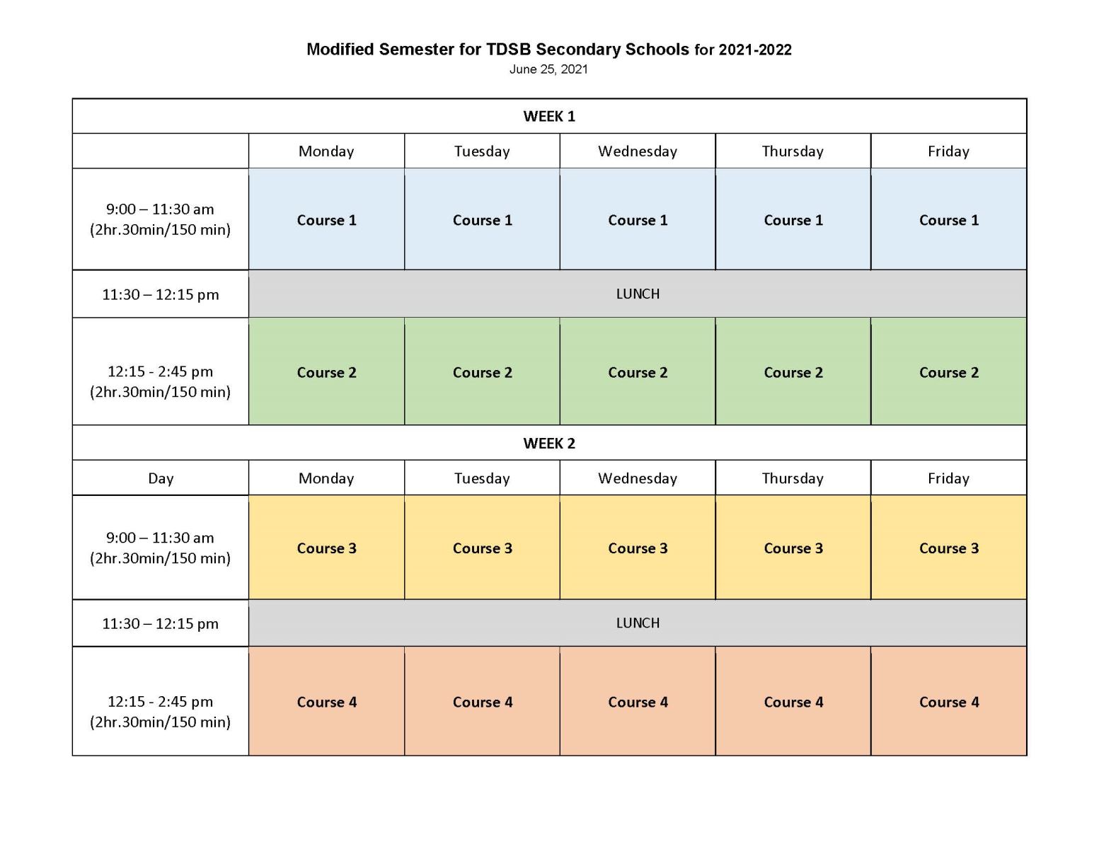 Update June 28, 2021: The TDSB continues to consider details of the modified semester for all secondary schools and has now finalized the school year calendar and daily schedule that all secondary schools will be following.