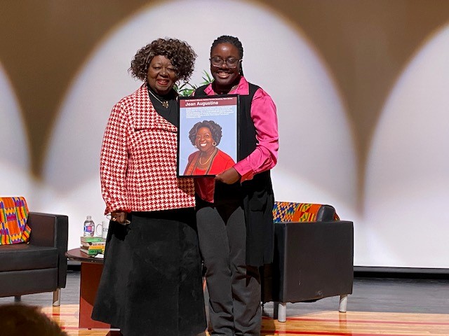 Pictured: The Honorable Jean Augustine with student host Donielle from Delphy Secondary School.