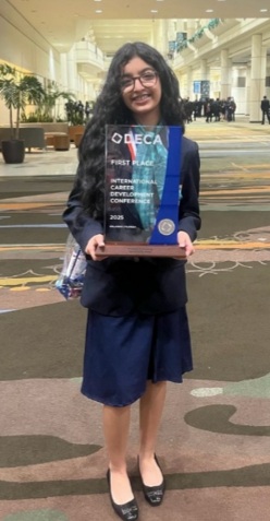 Then, on April 28, after months of tireless work and competition at every level, Aneri Chevli was officially crowned DECA World Champion in her category, an extraordinary achievement that showcases her talent, dedication and passion for marketing.